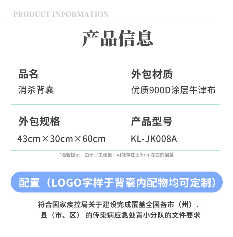 產品名稱: | KL-JK008A消殺背囊 | ||